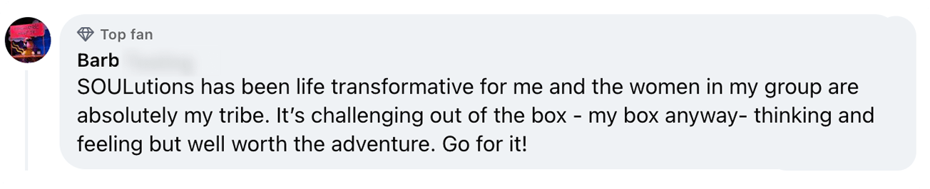 Community is medicine and a key to your transformational journey. Make like-minded, supportive friends and get extra support in our exclusive private Facebook group just for The SOULution participants. It’s often said we are the product of the people we spend the most time with. This is an amazing group that will light you up no matter what!